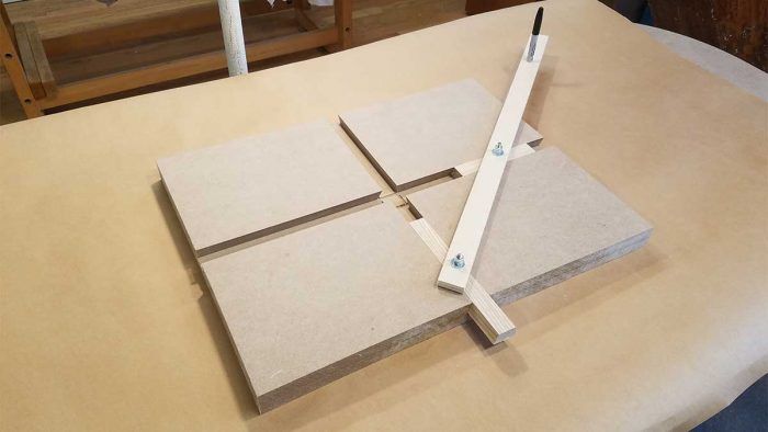 While the cord method is swell for drawings and layout, to really cutting a precise ellipse you will need an ellipsograph, a clever jig that tin move in an elliptical shape and carry anything from a pencil to a router. The ellipsograph is quite simple; all is required is two dovetailed tracks in MDF that are perpendicular to each other. Two pieces of hardwood are then milled to a sliding fit in the tracks and a bolt added at their centers.